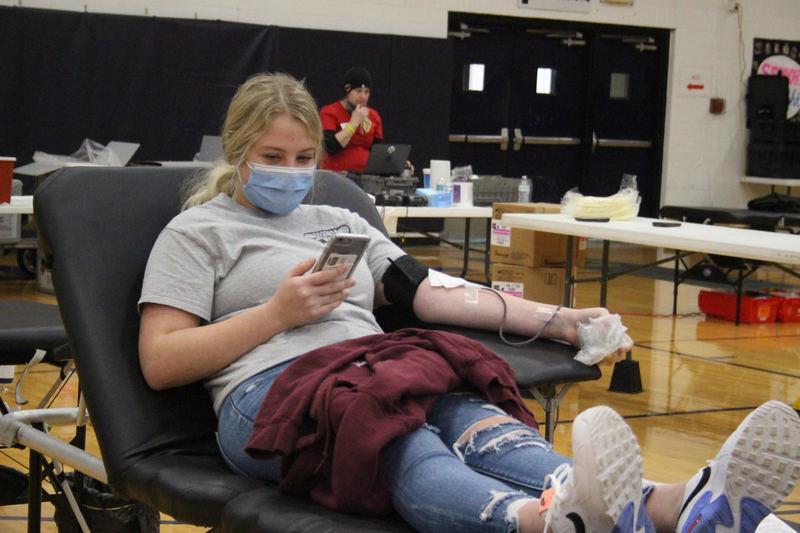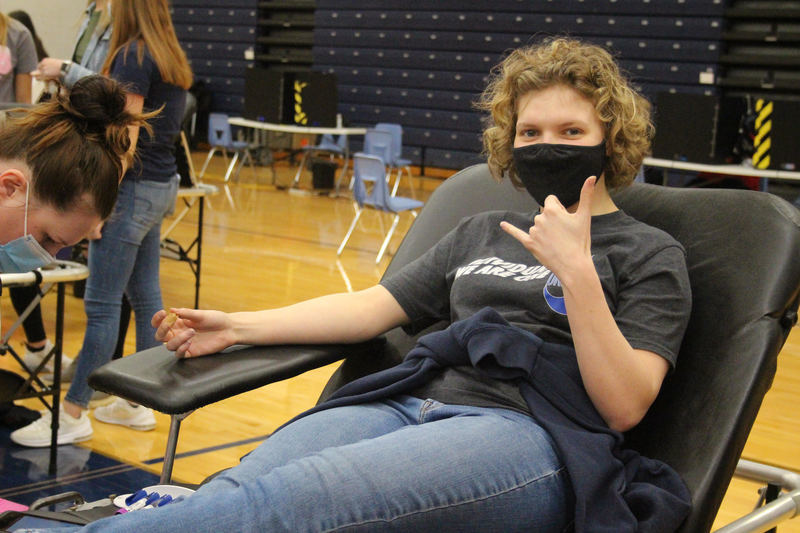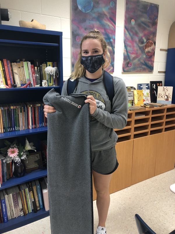 Grace Tegeler, one of our student donors, won a fuzzy throw blanket as a raffle prize after the blood drive!